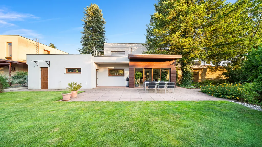Vnitřní část rezidence překračuje konvenční normy v bydlení. Výhledy do přírody, sofitikované úspořádání a moderní materiály nepřestávají bavit. Spolupráce s projekční kanceláří Atelier H1 se vyplatila. Rozsáhla rekonstrukce byla provedena precizně a odborně na všech úrovních stavby. Dostatek pokojů, uložného prostoru a skvěle postavená zahrada vytvářejí z tohoto objektu skutečný domov.