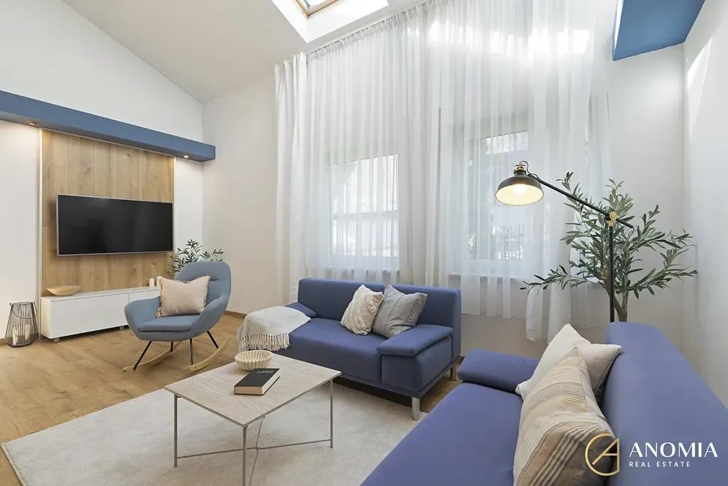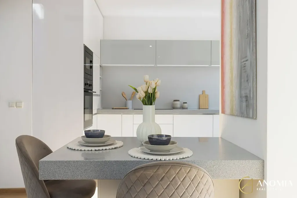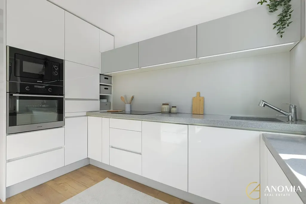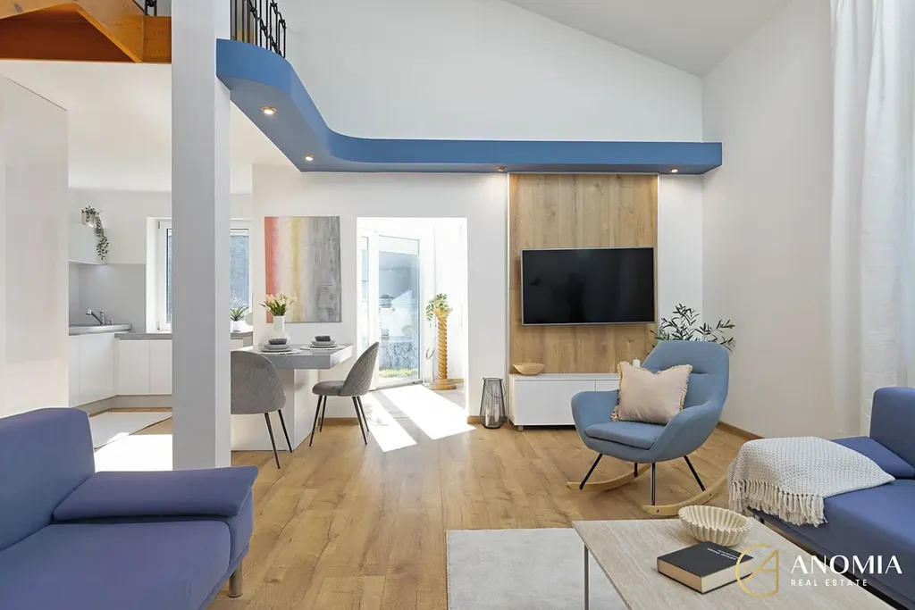 Dominantou domu je velkorysý obývací prostor s galerií, vysokými stropy a velkými okny, díky nimž je interiér krásně prosvětlený a působí velmi vzdušně. Na obývací část přirozeně navazuje kuchyně s jídelním koutem. Moderní kuchyňská linka je vybavena všemi spotřebiči a nabízí dostatek pracovního i úložného prostoru.