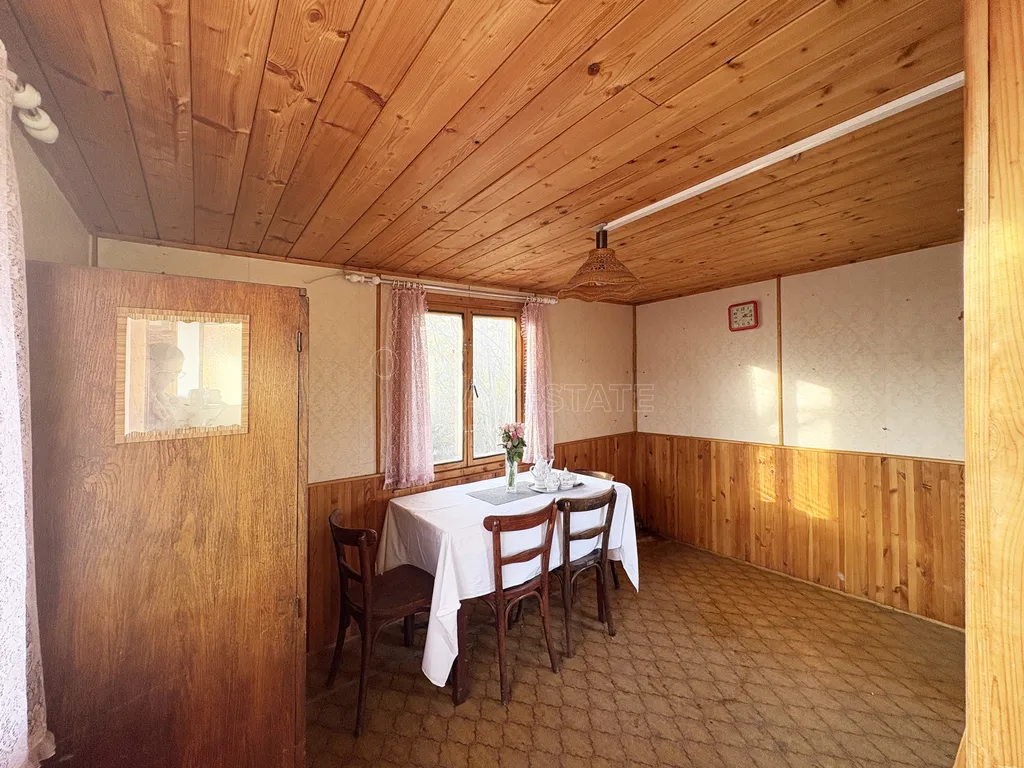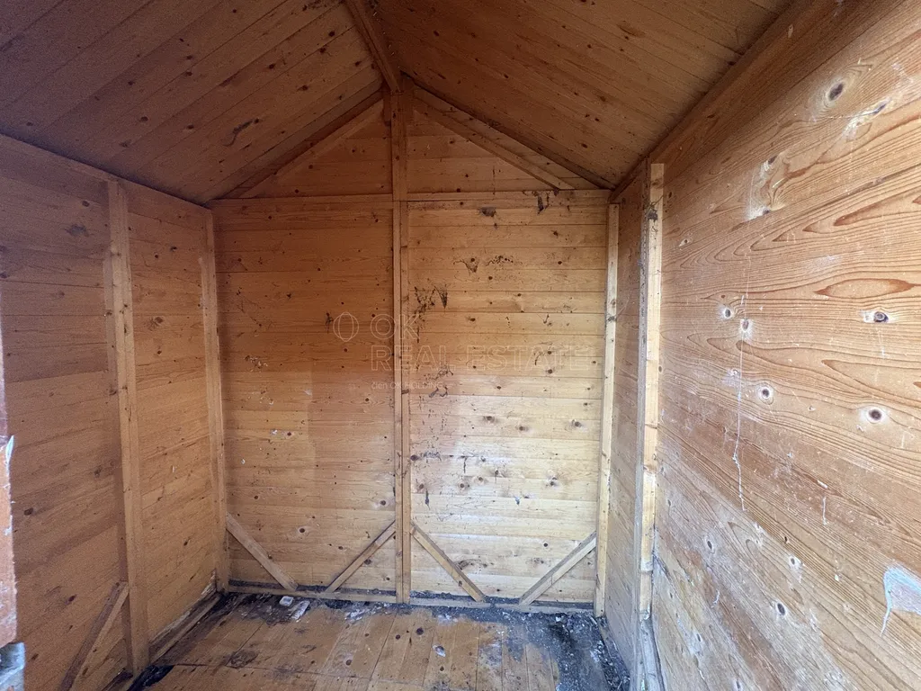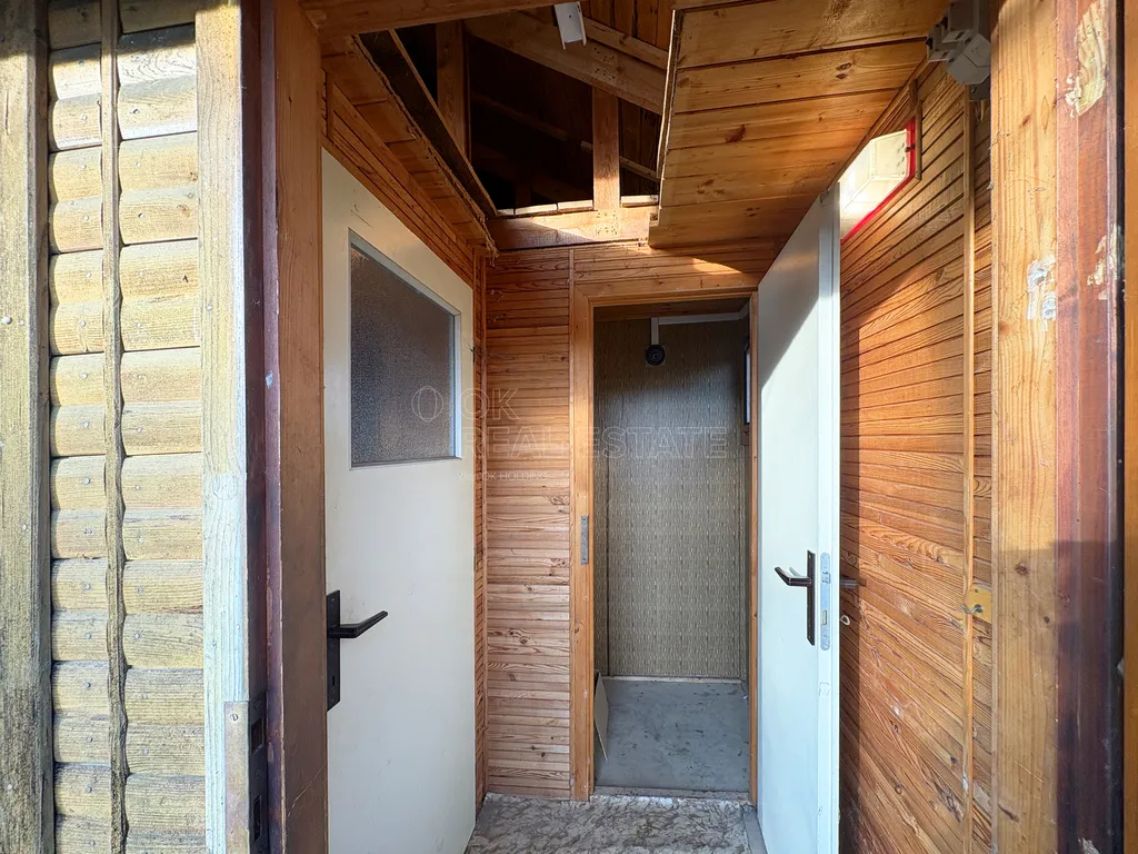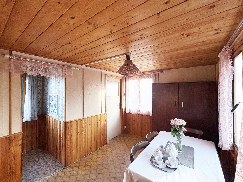 Chatička má zachovalou dřevěnou konstrukci na betonových základech. Chatička je částečně podsklepená. Sklep nemá pochozí výšku, slouží k uložení věcí. Ze vstupní chodbou je malá místnost, která může sloužit jako skládek nebo při použití chemického wc jako toaleta. Z chodby se dostanete do hlavní místnosti, která navazuje na malou kuchyňku. Nad celou plochou je půda, která může sloužit jako úložný prostor nebo je možné využít její potenciál a udělat tam například spací patro.