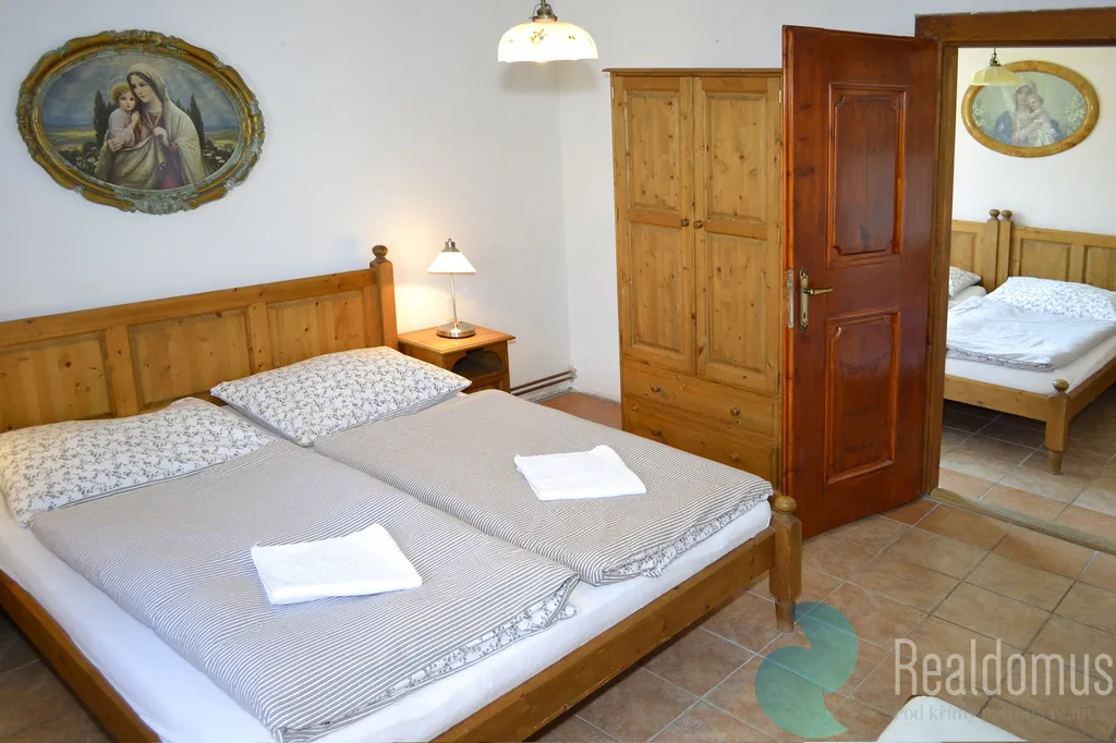 Velká stodola poskytuje možnost dalšího rozšíření kapacity ubytování či na jiné podnikání. Pozemek 6379 m2 lze využít na chov koní, či oveček.
