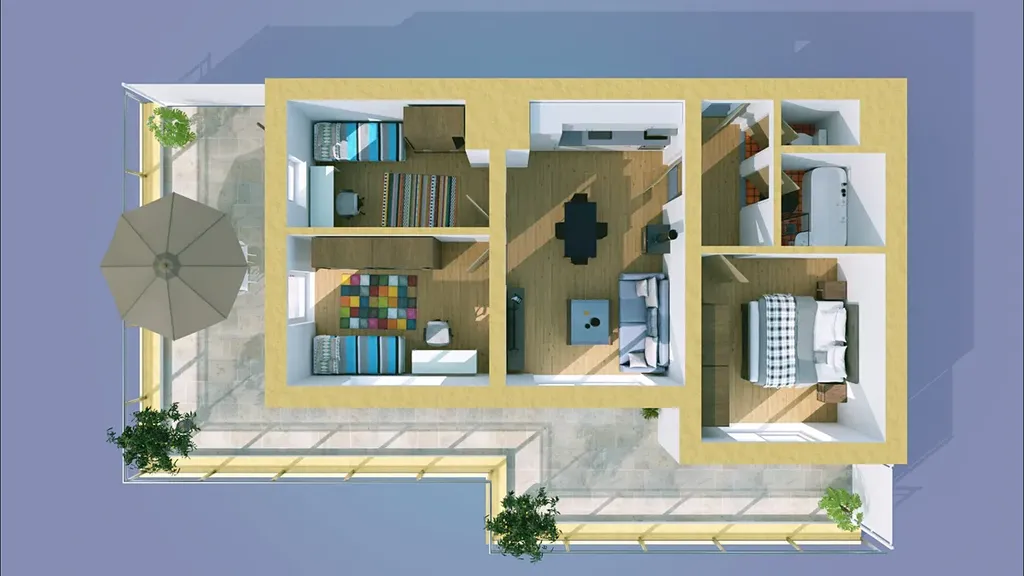 Byt 4+kk disponuje podlahovou plochou 70,5m² a terasou 47m². Je orientovaný jiho-východním směrem. Z jednotlivých pokojů lze vstoupit na prostornou terasu, která zastoupí zahradu či pergolu v rodinném domě ale bez práce a fin. nákladů na údržbu. Je to prostor pro relax, grilování, rodinné oslavy, setkání...