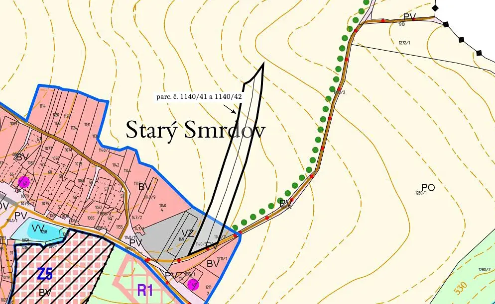 Stavební a zemědělské území v obci Starý Smrdov