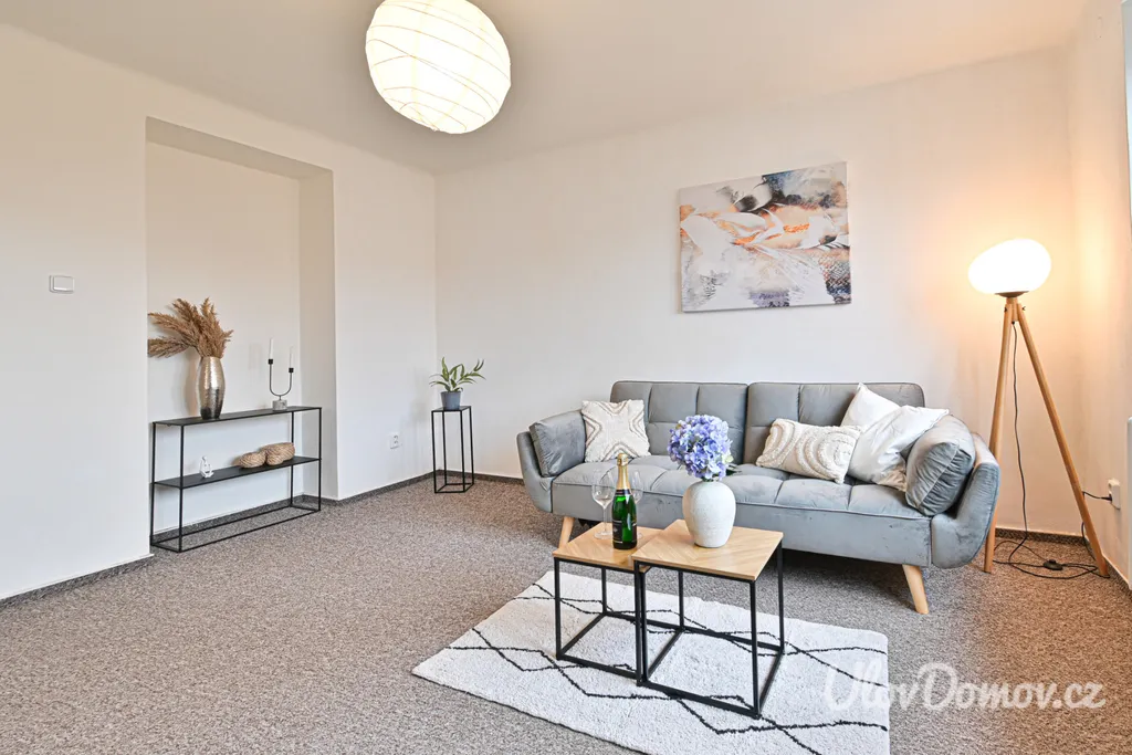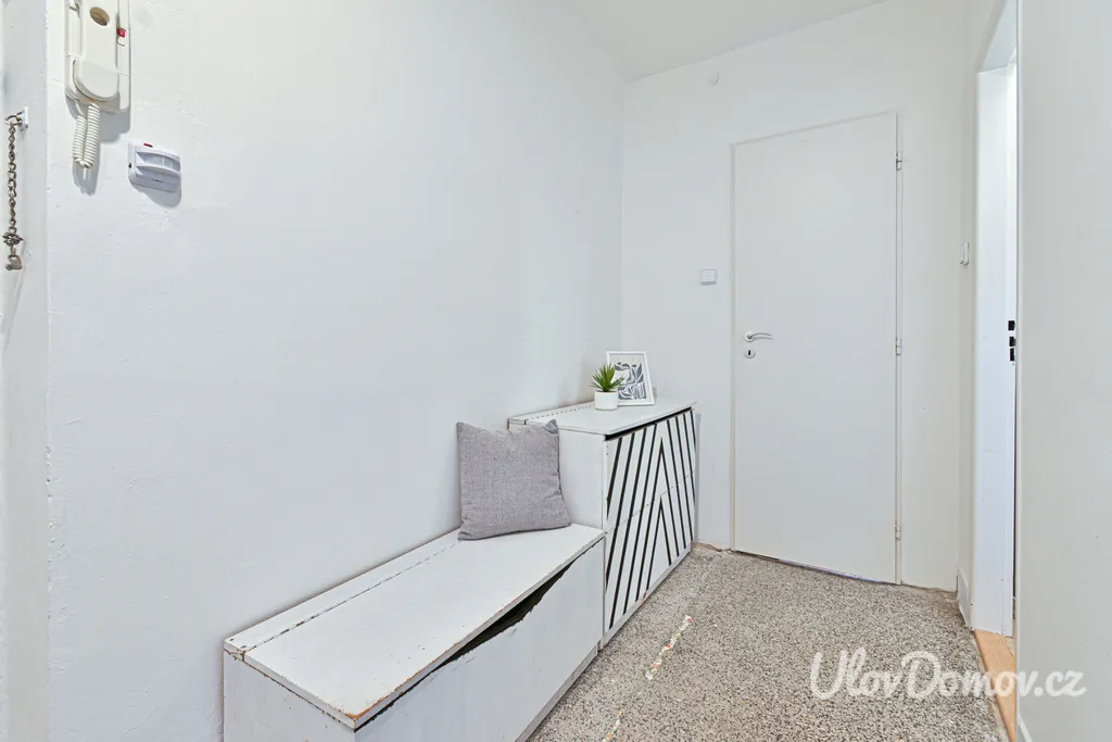 Byt se prodává nevybavený, součástí je však prostorná kuchyňská linka vybavená plynovým sporákem, troubou a lednicí. Dispozice nabízí dva světlé a prostorné pokoje, samostatnou kuchyň, koupelnu společnou s WC, vstupní chodbu a praktickou komoru přímo v bytě, která poskytuje dostatek úložného prostoru.