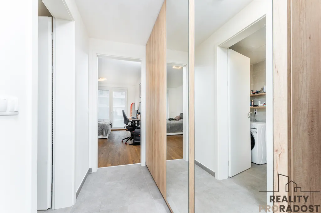 Byt se nachází v přízemí novostavby moderního bytového domu kolaudovaného v roce 2022, zařízen je kuchyňskou linkou včetně spotřebičů. Byt je dále vybaven rekuperací a přípravou na předokenní žaluzie. Užitná plocha bytu činí 30,8 m², což poskytuje dostatek prostoru pro pohodlné bydlení. Prostorná předzahrádka o velikosti 22,5 m² je pak ideálním místem pro relaxaci a venkovní posezení. K bytu náleží sklepní kóje o velikosti 1,5 m² a parkovací stání v suterénu bytového domu.