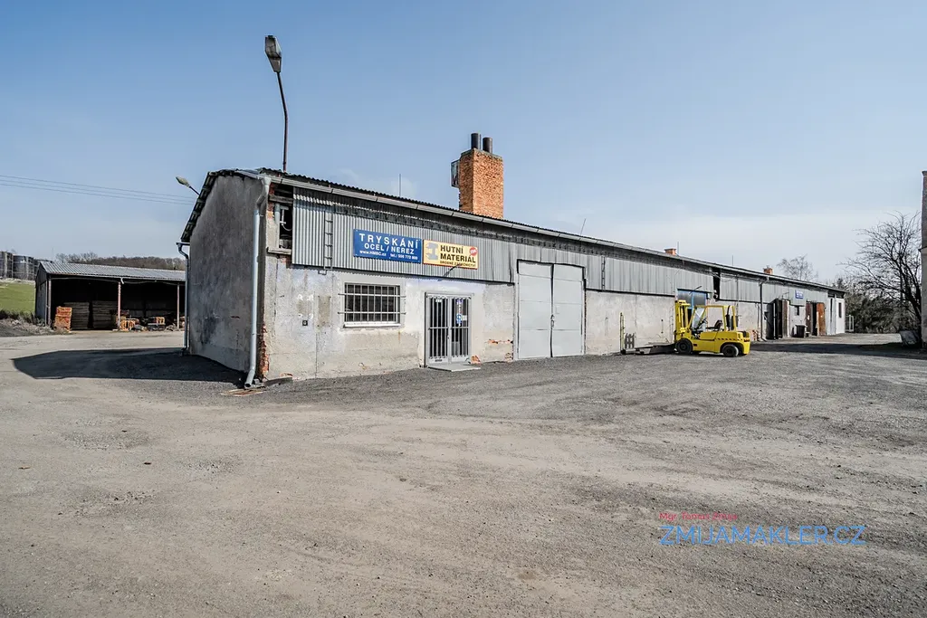Součástí pozemku je hala o velikosti 641 m2 s kanceláří, prodejnou a dalšími devíti samostatnými dílnami. Dílny mají svůj samostatný vjezd či vchod na obě strany budovy. Budova je zděná, opatřená brizolitovou omítkou, základy budovy jsou provedeny z betonových základových pásů, střecha budovy je sedlová, pokrytá vlnitým plechem. Okna a dveře/vrata v jednotlivých místnostech jsou kovová, místy jsou okna vybavena luxvery. Vnitřní povrch zdí dílen je vyhotoven z vápenné omístky. Elektroinstalace v budově je třífázová, světelná. Vytápění v hlavní dílně je zajištěno kotlem na pevná paliva. V budově je možno obnovit původní připojení k plynu a zajistit tak vytápění objektu plynovým kotlem. Přívod vody, WC a odpady v budově instalovány nejsou, je možné se napojit na nedaleký vodovodní řád s pitnou vodou. K dispozici je hloubkový vrt 33 m s užitkovou vodou vedle budovy. Některé části budovy jsou nyní v pronájmu, po dohodě lze ve stávajících pronájmech pokračovat. Areál je možno si pořídit samostatně bez vybavení nebo i s vybavením. Termín prohlídky si domluvte s makléřem.