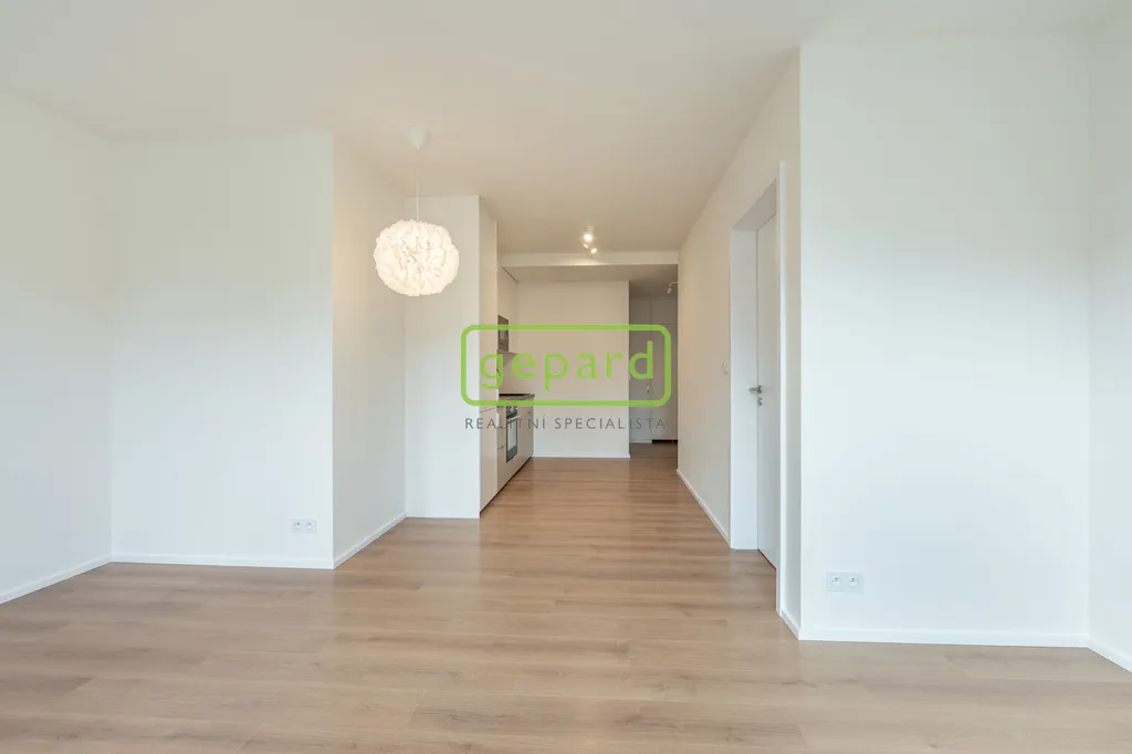 Byt je tvořen vstupní předsíní, obývacím pokojem s kuchyňským koutem, ložnicí se vstupem na uzavřenou terasu a dále prostornou koupelnou se sprchou a WC. Obývací pokoj je vybaven kvalitní kuchyňskou linkou s vestavěnými spotřebiči (horkovzdušná trouba, digestoř, lednice s mrazákem, myčka, mikrovlnná trouba). Podlaha - Vinylové velkoformátové vlysy a dlažba. K vybavení dále patří designové osvětlení, předokenní žaluzie. Komunikaci s návštěvami zajišťuje videotelefon. Výhodou je vlastní plynová kotelna v suterénu domu s nízkými náklady na vytápění a ohřev vody. K bytu je možné si dále pronajmout sklep (+500 Kč/měs) či parkovací stání na pozemku u domu (1000,- Kč/měs).