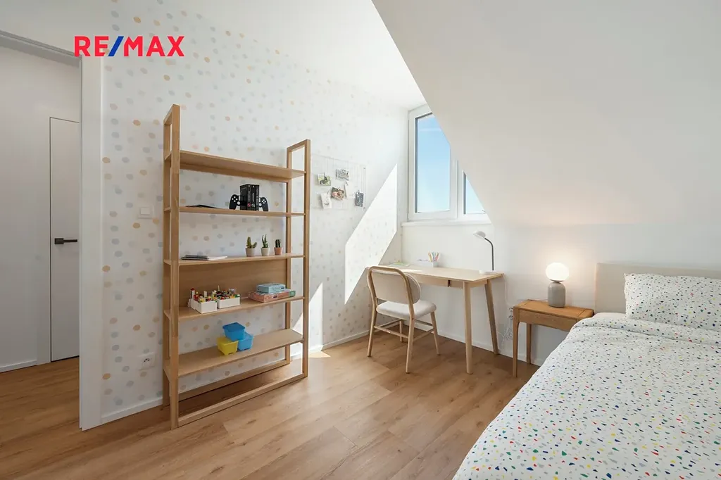 Dům nabízí promyšlenou dispozici 5+kk – čtyři samostatné pokoje, prostorný obývací pokoj s kuchyňským koutem, dvě koupelny a technickou místnost. Celková podlahová plocha činí 114.5 m². K domu náleží pozemek o velikosti cca 324 m², terasa o velikosti 32 m² a dvě parkovací stání s přípravou pro instalaci wallboxu pro dobíjení elektromobilu.