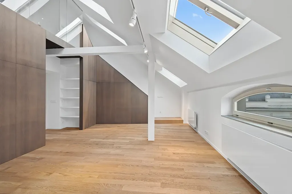 K pronájmu nabízíme mezonetový byt o dispozici 3+1 a celkové ploše 130 m² s terasou o 10 m², situovaný v 5. patře udržovaného domu s výtahem, v bezprostřední blízkosti parku Stromovka.