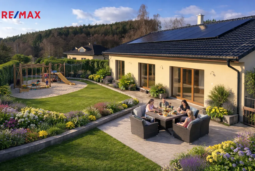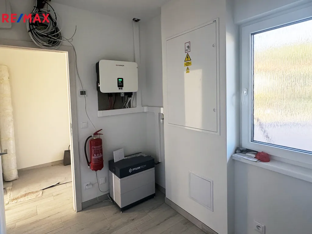 Je vybaven solární elektrárnou 8,1 kW, bateriovým úložištěm 12 kWh, chytrými termostaty, bezpečnostním systémem, podlahovým vytápěním, klimatizací i krbem. Moderní technologie a trojskla zajišťují nízké provozní náklady po celý rok.