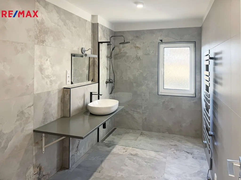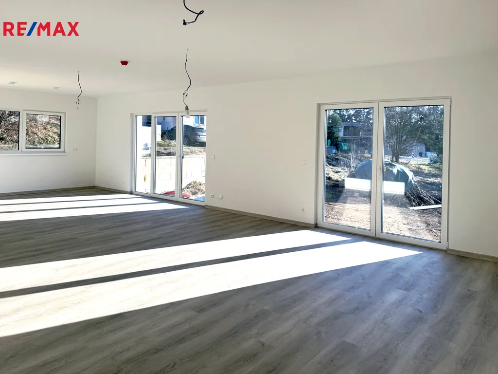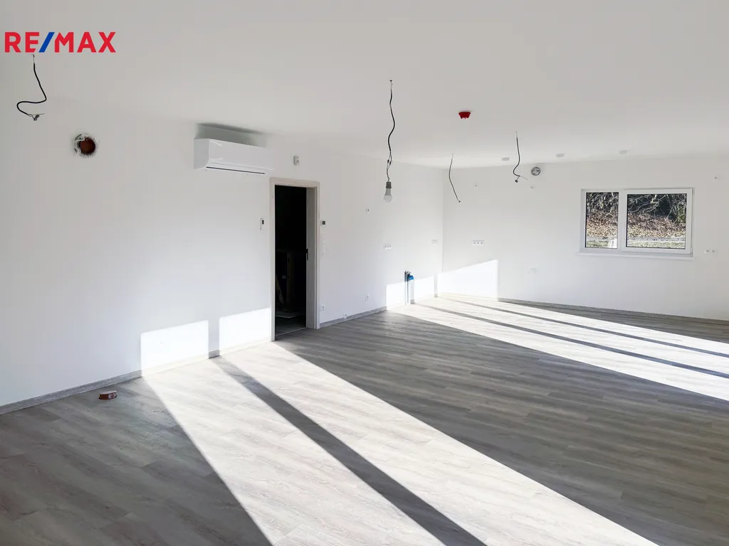 Srdcem domu je velký, světlý obývací prostor s přípravou pro kuchyň. Dále zde najdete dětskou ložnici (nebo ložnice pro hosti), koupelnu se sprchou, ložnici s výstupem na terasu a master ložnici s vlastní koupelnou a šatnou. Praktické jsou i částečně využitelné půdní prostory.