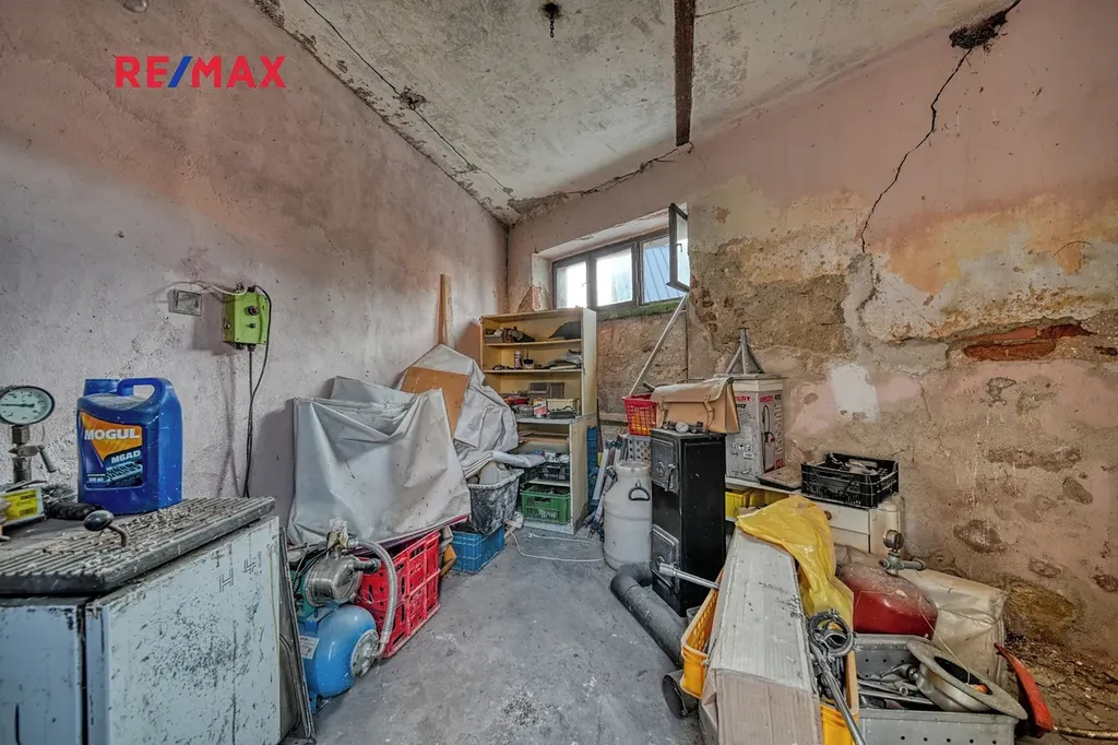 Na dvoře se nachází sklad, dílna, prostor pro posezení i zahradničení. V blízkosti domu je garáž, která nabízí další úložný prostor nebo parkování.