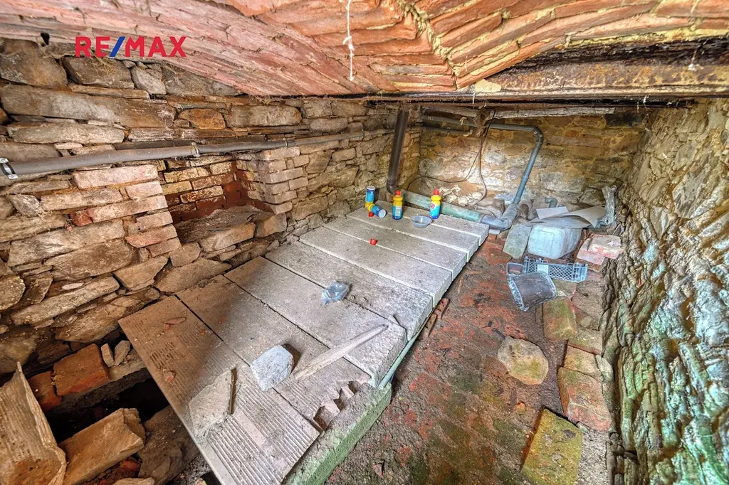 Dům je dispozičně řešen jako 3+kk. V hlavní místnosti proběhla rekonstrukce, jsou zde udělané nové stropy s přiznanými trámy, kvalitní plastová okna – trojskla v barvě a krbová kamna s výkonem 12 kW. Místnost je připravena na osazení kuchyňskou linkou. Chodbou projdeme do ložnice a dalšího pokoje. Zadní pokoj má hezkou dřevěnou podlahu.