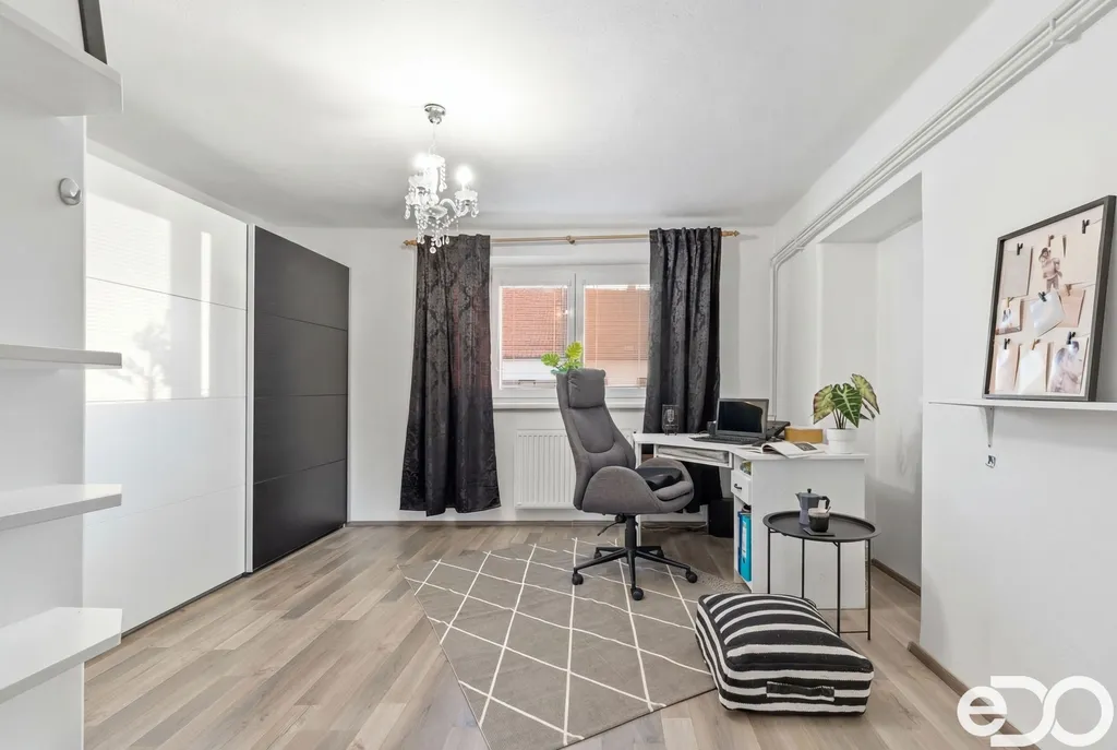 Uzavřený dvůr poskytuje příjemné soukromí a nabízí prostor pro zahradu, posezení nebo rodinné zázemí.