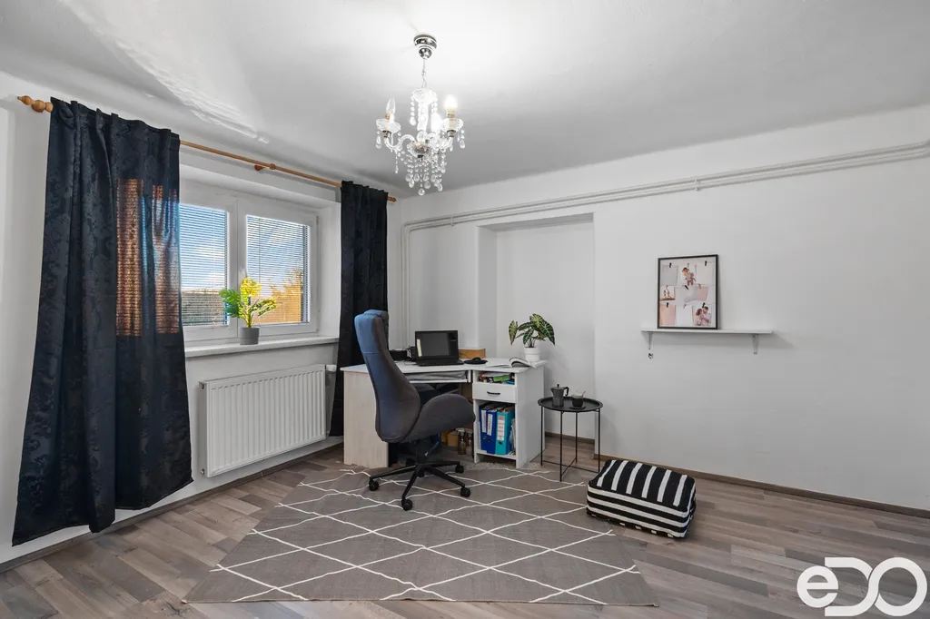 Dispozičně nabízí kuchyni s komorou, tři obytné pokoje, koupelnu a sociální zázemí.