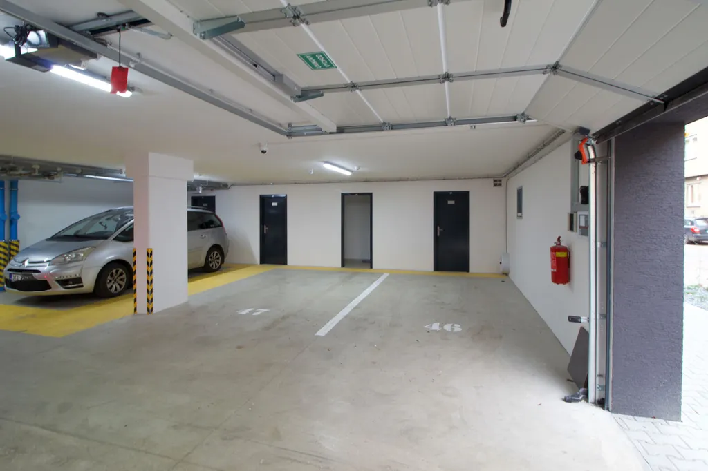 K bytu náleží sklep v suterénu domu a jedno parkovací stání. Přímo z garáže se pohodlně dostanete výtahem až k bytu.