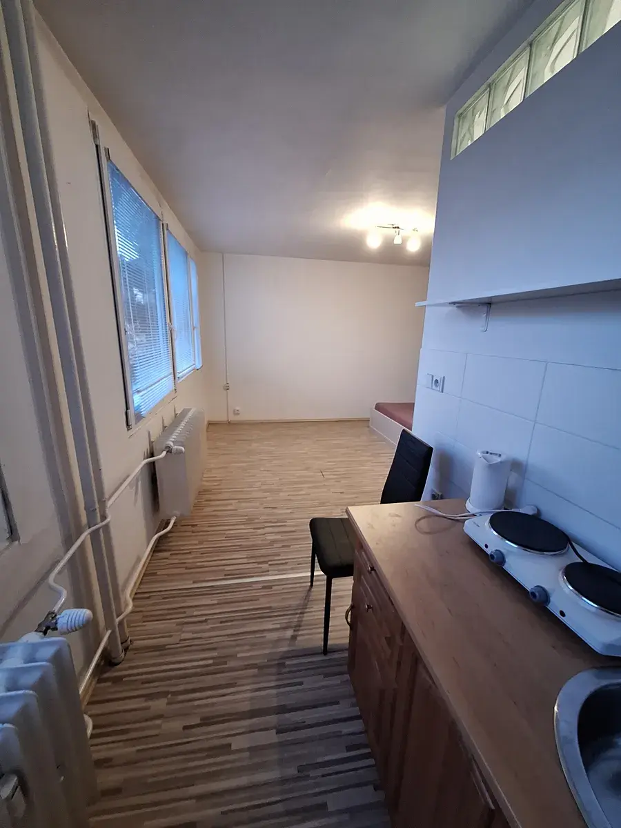 Pronájem bytu 1kk (28,3 m2), Na úlehli, Praha 4-Michle. Byt v prvním patře panelového domu. V bytě je vstupní chodba, koupelna s WC a prostorným sprchovým koutem. Hlavní pokoj vybavený postelí a úložnými prostory. Kuchyňský kout jen s vařičem a lednicí. Pro méně náročného nájemníka.