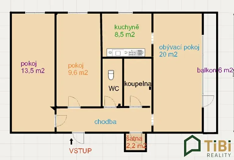 Nabízíme Vám k pronájmu bytovou jednotku o dispozici 3+1s balkonem a šatnou s přibližnou plochou 72 m2 nacházející se v Brně - Lesné. Byt leží v prvním poschodí cihlového bytového domu. Byt je udržován, jsou v něm nové odpady, omítky, elektřina, koupelna, plastová okna. Na zemi jsou položeny parkety a dlažba. Jednotka se sestává ze vstupní chodby, odkud se vchází do dvou neprůchozích pokojů, třetí z nich o výměře 20 m2 je vybaven lodžií. V kuchyni je umístěna linka a je připraveno místo na jídelní kout. WC je samostatné, v prostorné koupelně je umístěna vana. Úložné prostory řeší šatní skříň nebo praktická komora - šatna.