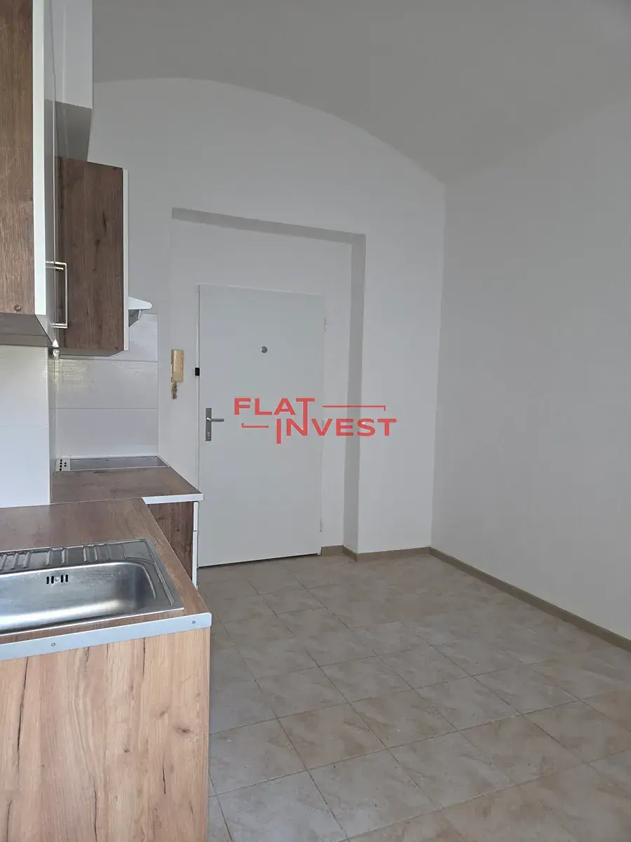 Obytná místnost: Prostorný pokoj s kuchyňským koutem (kuchyně je jedinou součástí vybavení, zbytek bytu si můžete zařídit podle vlastního vkusu). Na podlaze je praktická keramická dlažba.