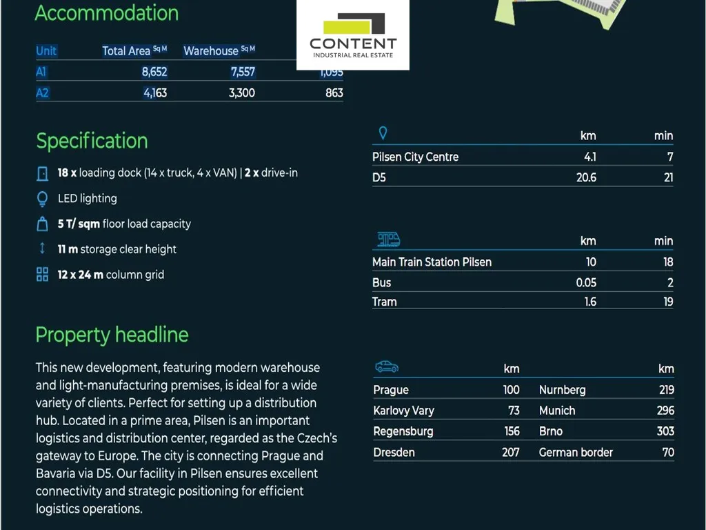 V zastoupení majitele a bez provize nabízíme novostavbu komerčních prostor, umístěných v rámci nového průmyslového areálu situovaného u silnice E45 s dobrým napojením na D5. Výjimečná nabídka moderních skladových nebo výrobních prostor v rámci širší Plzně.
