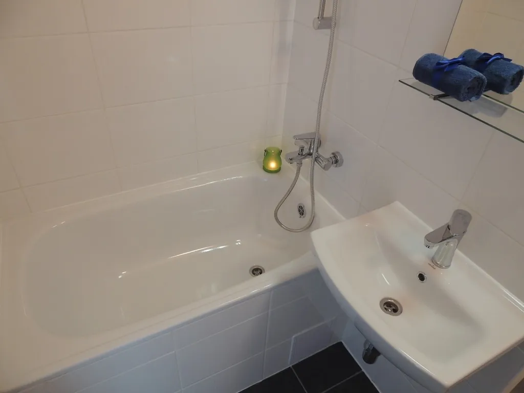 Byt má vyzděné jádro, nové podlahy, rozvody, omítky, nové interiérové dveře. Nová koupelna s vanou, toaleta je součástí koupelny oddělená přepážkou.