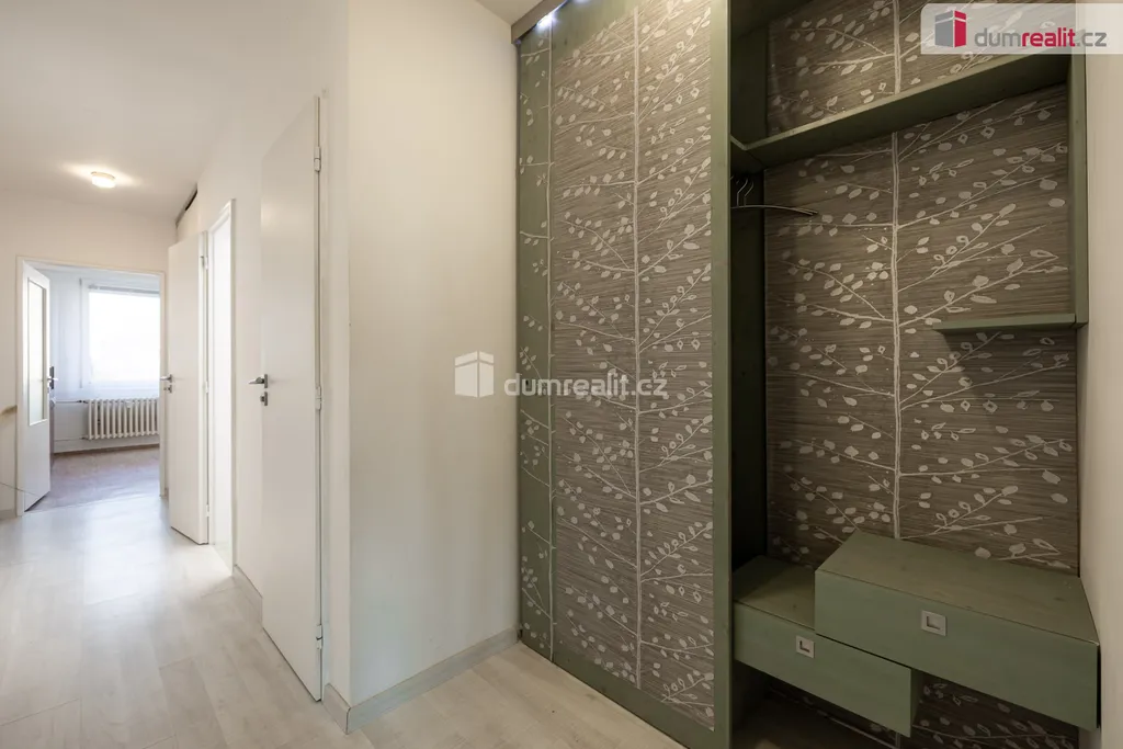 Byt se skládá ze vstupní chodby, které dominuje prostorná vestavěná skříň, obývacím pokojem, kuchyní s jídelnou, dvo neprůchozích pokojů, technickou místností, koupelnou a samostatným wc.e V ložnici je velká rohová šatna. Na oknech z ložnice a dětského pokoje jsou předokenní žaluzie. Přes obývací pokoj a kuchyň je zasklená lodžie, která je orientován na JZ. V bytě nové rozvody elektřiny.