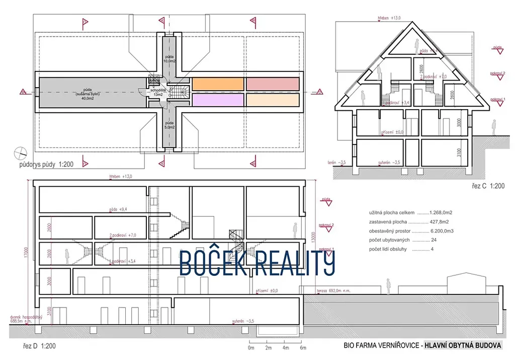 V zastoupení majitele nabízíme k prodeji lukrativní pozemky v lokalitě ochranného pásma Krkonošského národního parku o celkové výměře 34.107 m². Projekt je unikátním spojením výstavby agroturistické ekofarmy s krkonošskou přírodou v blízkosti města Žacléř. Zajímavostí tohoto projektu je, že tento projekt nemá vliv na soustavu NATURA 2000 a dále je zde vyprojektovaný hydrodynamický model, který bude schválený stavebním povolením. Tento projekt obsahuje, hlavní budovu s ubytováním, stravováním a lázeňskými službami, dále pak moderní hospodářské budovy. Nedílnou součástí farmy jsou přilehlé pozemky s plánovaným využitím pro biotop, sad, produkční zahradu, pastvu ovcí, koz, mladých býků a pro chov slepic a králíků. Stavební styl objektů farmy v sobě spojuje tradiční znaky krkonošské architektury s moderními prvky a kvalitním detailem. Farma bude postavena na základech původního domu usedlosti rozsáhlého hospodářství. Záměrem tohoto INOVAČNÍHO, UDRŽITELNÉHO a K PŘÍRODĚ ŠETRNÉMU projektu je využít genia loci již zaniklé obce Vernířovice / Wernsdorf a vyjádřit ESPRIT myšlenky autorů při tvorbě tohoto díla. Provoz objektů by měli zajišťovat moderní technologie se špičkovými provozně-ekologickými parametry doplněné o velkou pěstírnu hub, které s produkty zahrady budou využity pro účely potravinářské, kosmetické a pharmaceutické.