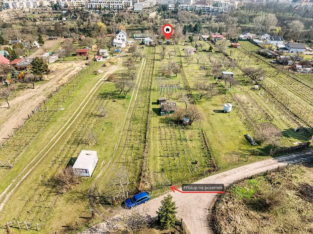 Pozemek nabízí nejen velkorysou výměru, ale také velmi praktické řešení přístupu. Bezproblémový příjezd je zajištěn hned ze dvou stran – ze spodní části po zpevněné komunikaci a z horní části po nezpevněné cestě. Díky tomu je zahrada velmi dobře dostupná a poskytuje flexibilní možnosti využití.