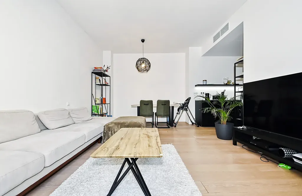 Dispozice bytu nabízí prostorný obývací pokoj s kuchyňským koutem, dvě samostatné ložnice, moderní koupelnu a samostatnou toaletu. Interiér byl navržen s důrazem na kvalitu a komfort – použity byly nadstandardní materiály, vestavěné osvětlení a moderní technologie.
