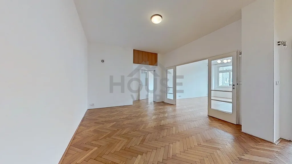 Byt se nachází ve 3. patře domu ze 30. let s výtahem a velkoryse řešenými byty, s vysokými stropy a velkými francouzskými okny, která zajišťují výjimečnou světlost všech obytných místností. Komfort bydlení podtrhují zachovalé dubové parkety ve všech pokojích a na svou dobu převratné stropní vytápění, které zajišťuje rovnoměrné a úsporné teplo bez rušivých radiátorů.