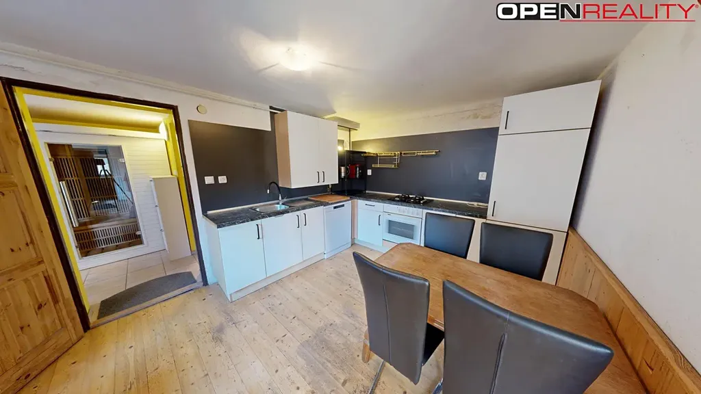 Dům s dispozicí 3+1 prošel vkusnou modernizací. Najdete zde prostornou kuchyni s moderní linkou a vestavěnými spotřebiči, na kterou navazuje jídelní kout. Koupelna je vybavena prostorným sprchovým koutem a moderní sanitou. Interiér doplňují laminátové podlahy a krbová kamna, která v zimních měsících zajistí příjemnou atmosféru. Unikátním prvkem domu je vlastní sauna, která nabízí soukromé wellness přímo v domě.
