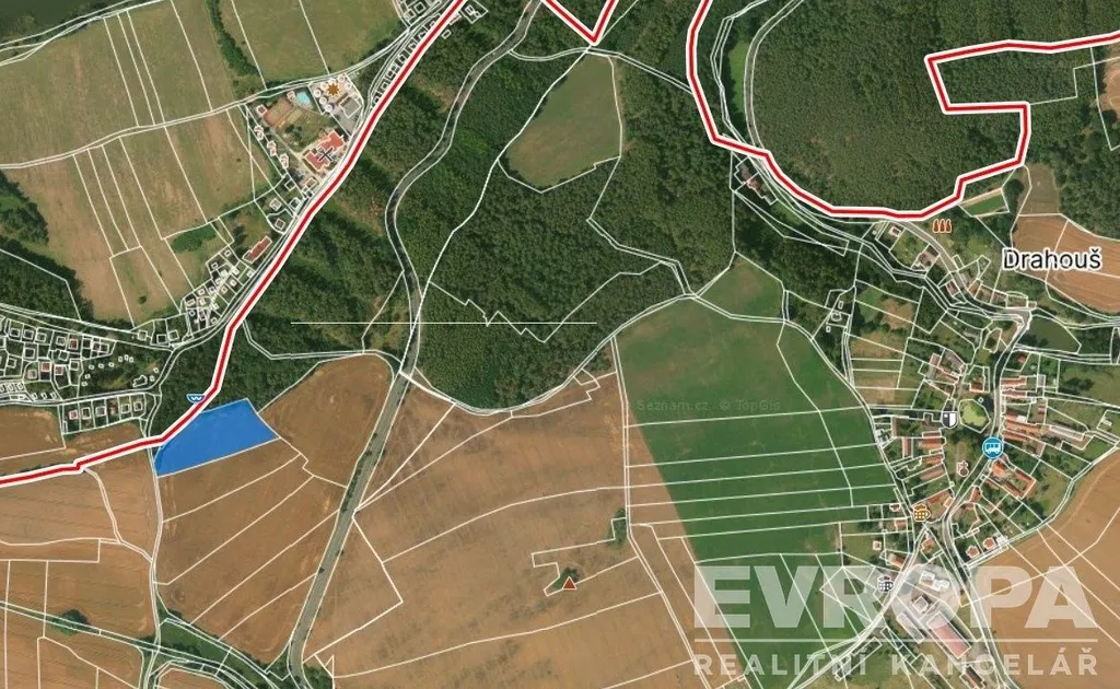 Prodej pole 8557m2 u obce Drahouš. Dvě parcely jedna orná půda 8373m2 a při cestě 184m2 , vedeno jako lesní pozemek. Jen v celku. V současné době propachtováno.
