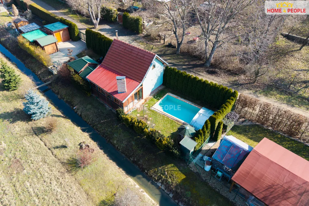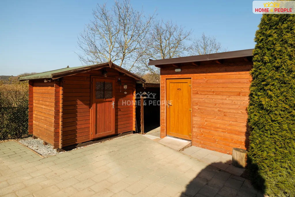 Na pozemku se nachází krytý zděný bazén se slanou vodou, osvětlením a zastřešením, dále pergola s posezením, sklep s mrazákem a dva zahradní domky (jeden domek je zateplený s elektřinou). Parkování je zajištěno přímo na pozemku pro dvě vozidla.