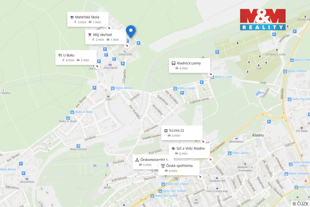 Velkou výhodou je klidné okolí s dostatkem zeleně – v blízkosti se nachází les a příroda, ideální pro relax i aktivní odpočinek. Lokalita zároveň nabízí dobrou dostupnost do centra i kompletní občanskou vybavenost.