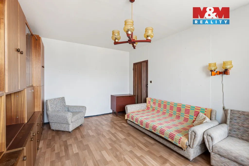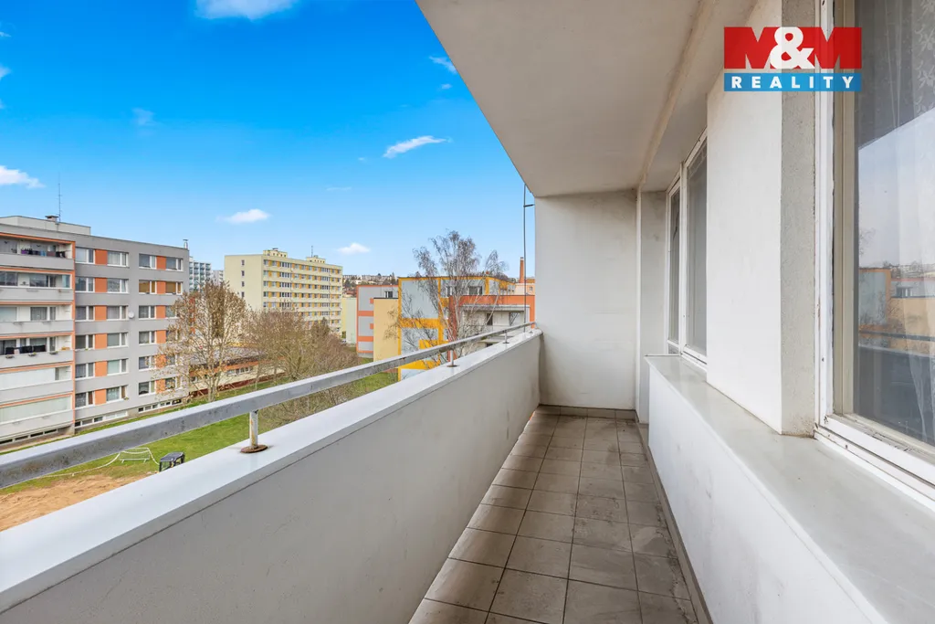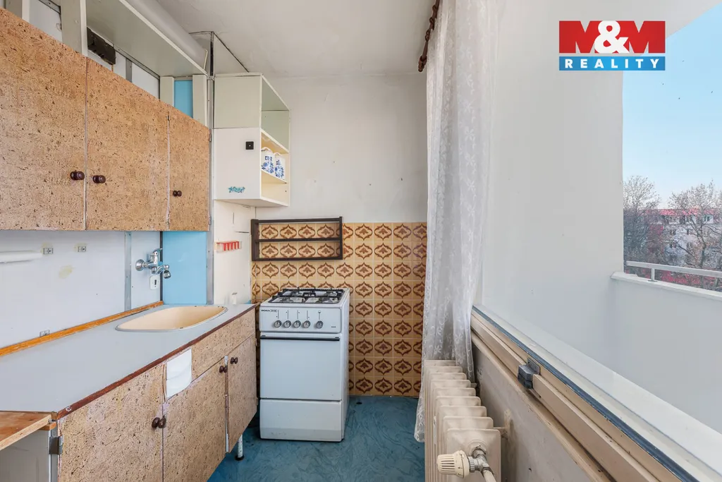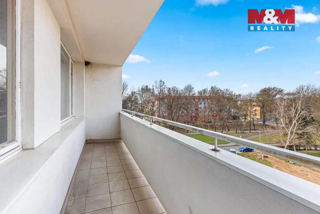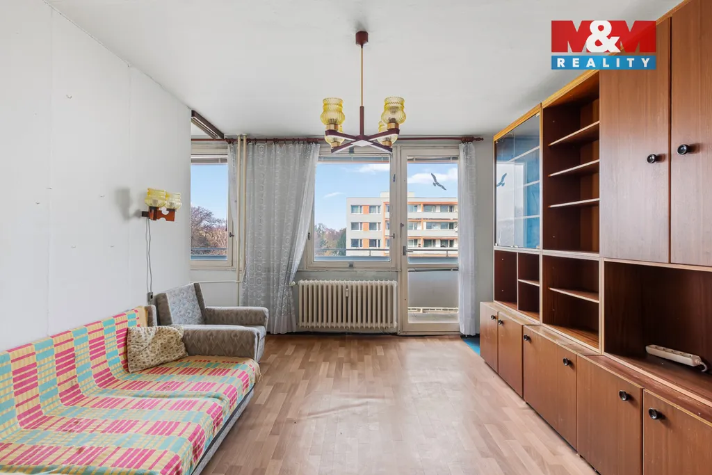 Tento byt se skládá ze vstupní chodby, koupelny s WC, obývacího pokoje, kuchyňského koutu, lodžie a součástí bytu je i komora na chodbě a sklepní kóje. Byt vyniká velkými okny jak v obývacím pokoji, tak v kuchyni a je tam tedy dostatek světla a slunce. Okna jsou orientována na západ. Byt se nachází ve 4. nadzemním podlaží a je v původním stavu.