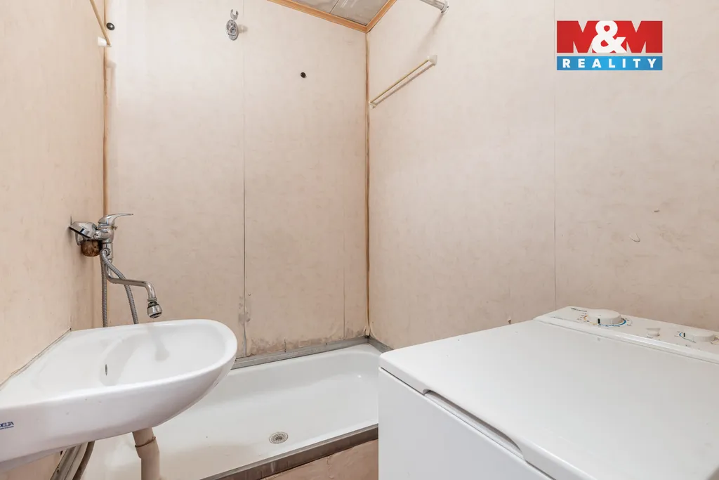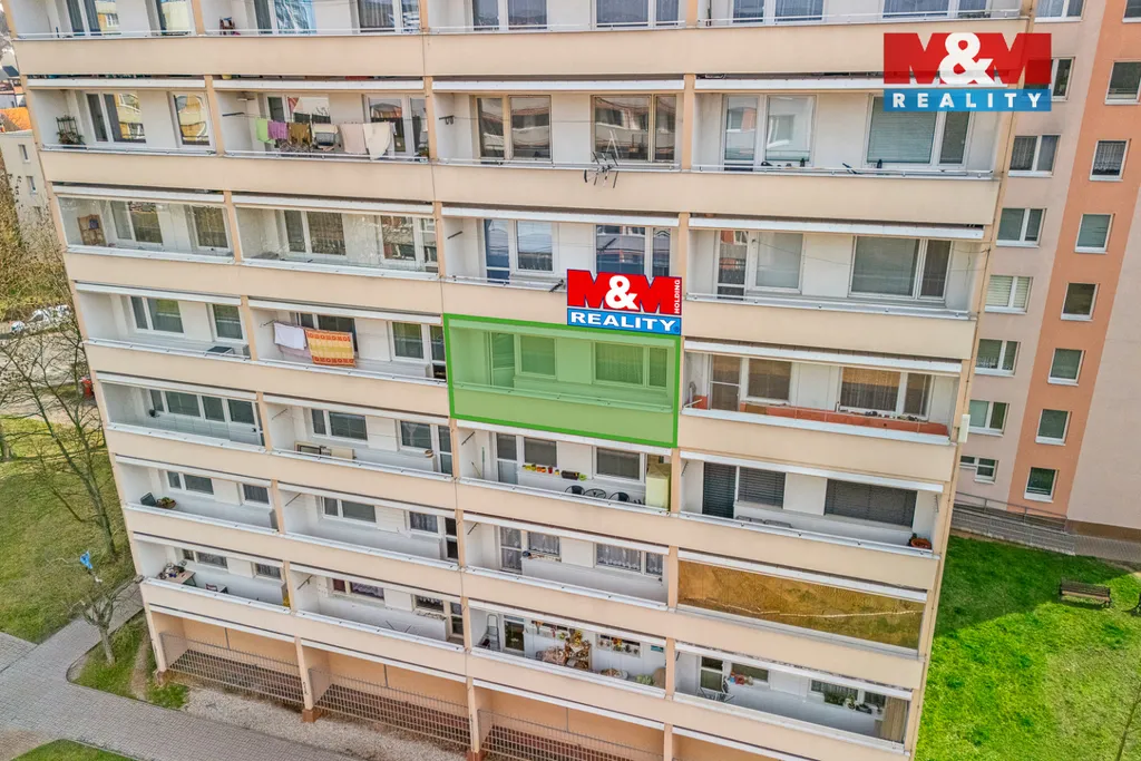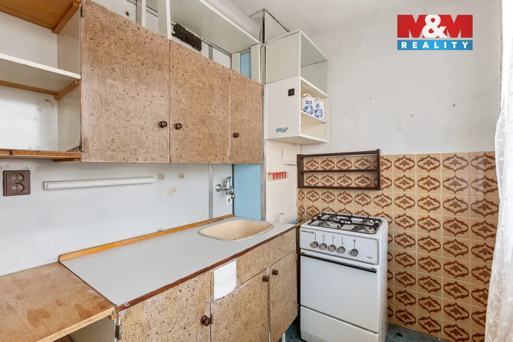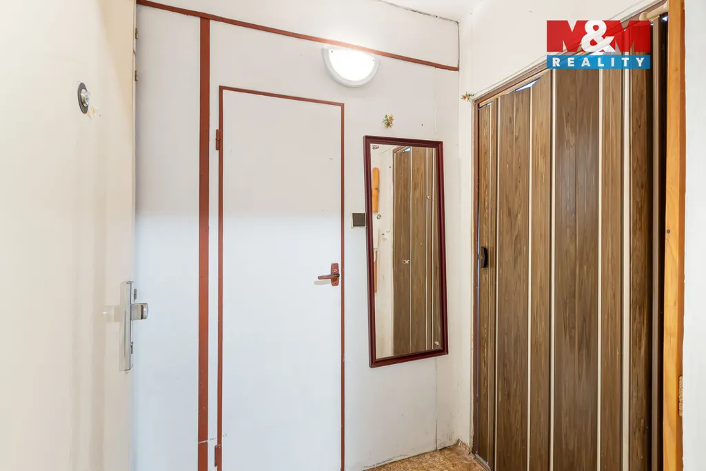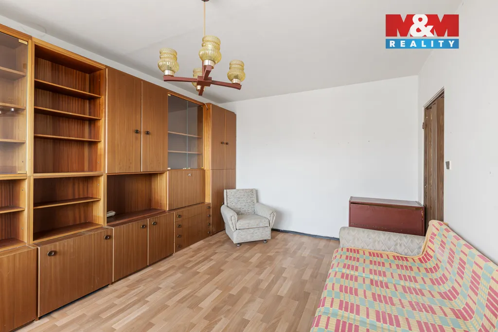 Tento byt se skládá ze vstupní chodby, koupelny s WC, obývacího pokoje, kuchyňského koutu, lodžie a součástí bytu je i komora na chodbě a sklepní kóje. Byt vyniká velkými okny jak v obývacím pokoji, tak v kuchyni a je tam tedy dostatek světla a slunce. Okna jsou orientována na západ. Byt se nachází ve 4. nadzemním podlaží a je v původním stavu.