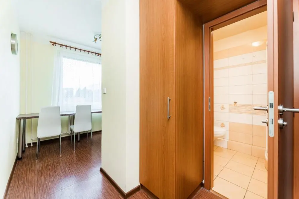 Byt je částečně zařízený (lednice + vestavné kuchyňské spotřebiče, kuchyňský stůl a židle, prostorná šatní skříň v předsíni).