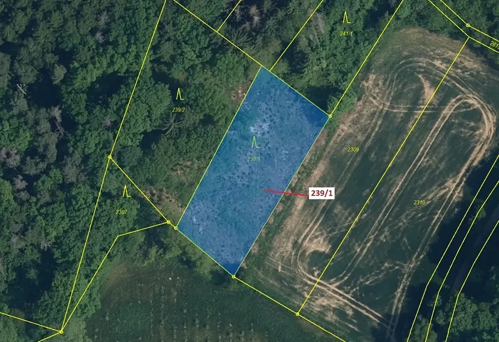 Lesní pozemek o výměře 1872 m2, parcelní číslo 239/1, podíl 1/1, katastrální území Jenišovice u Jablonce nad Nisou, obec Jenišovice, obec s rozšířenou působností Turnov, okres Jablonec nad Nisou, Liberecký kraj. Po těžbě.