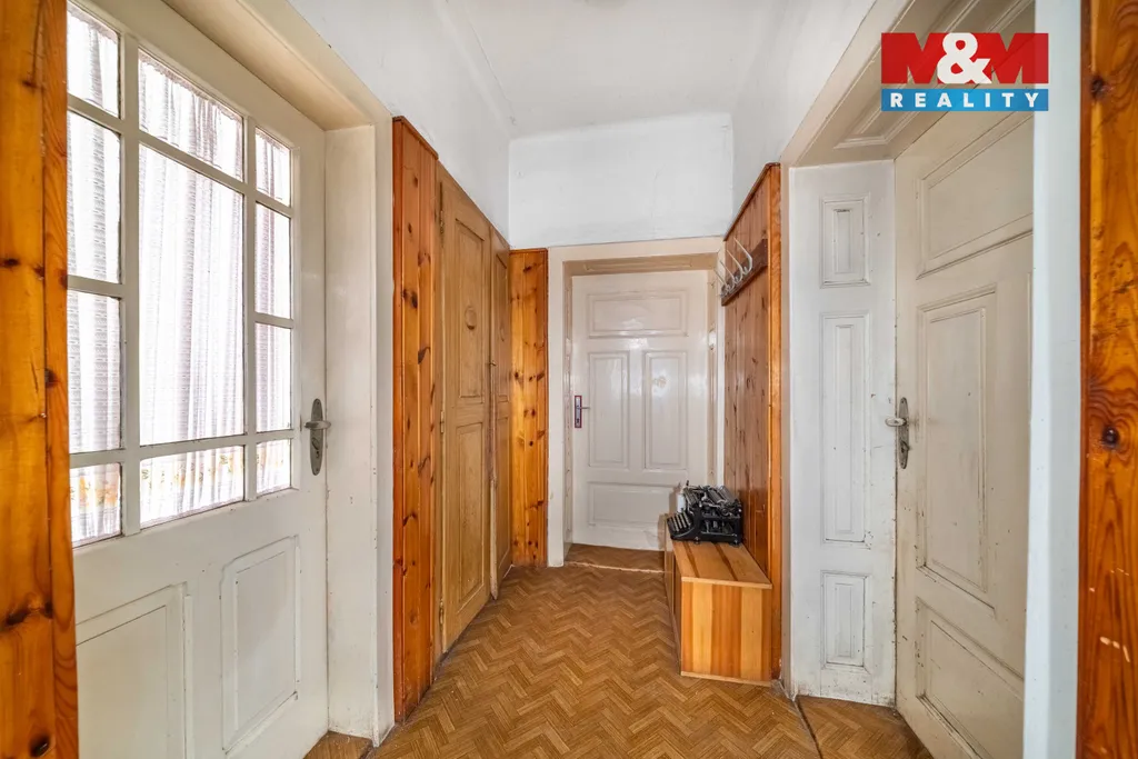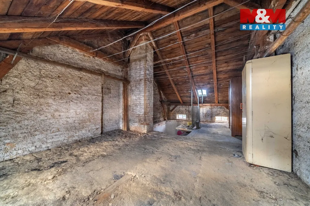 Nabízíme k prodeji řadový rodinný dům určený ke kompletní rekonstrukci, nacházející se na prostorném pozemku o celkové výměře 2 156 m². Zastavěná plocha činí 179 m². Dům je kompletně podsklepený a z větší části odkopaný ze tří stran, doplněný drenážním systémem.
