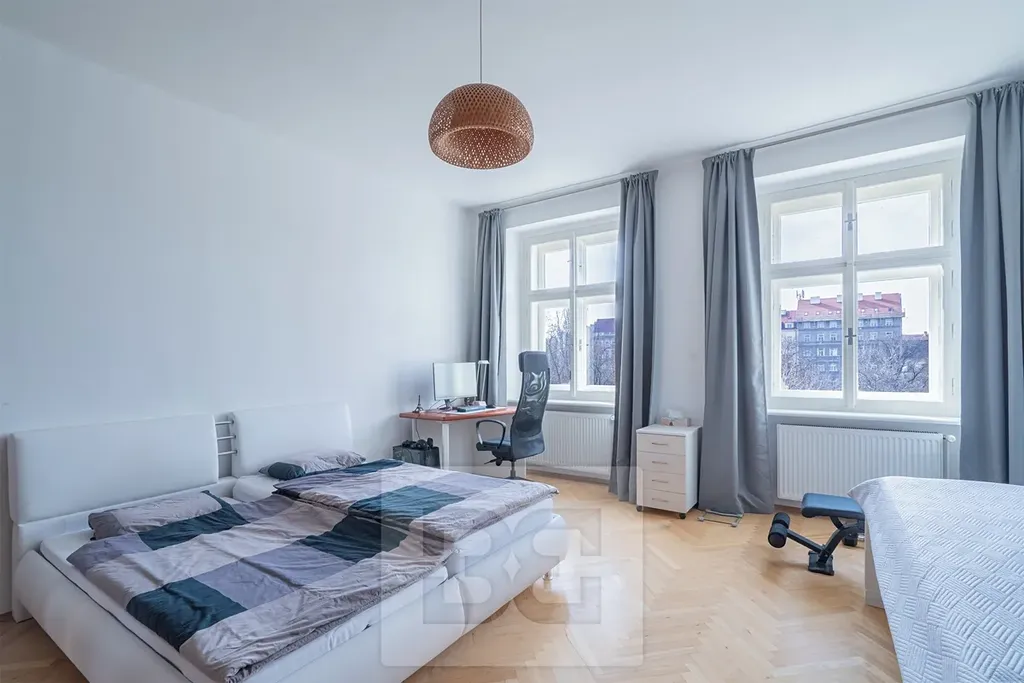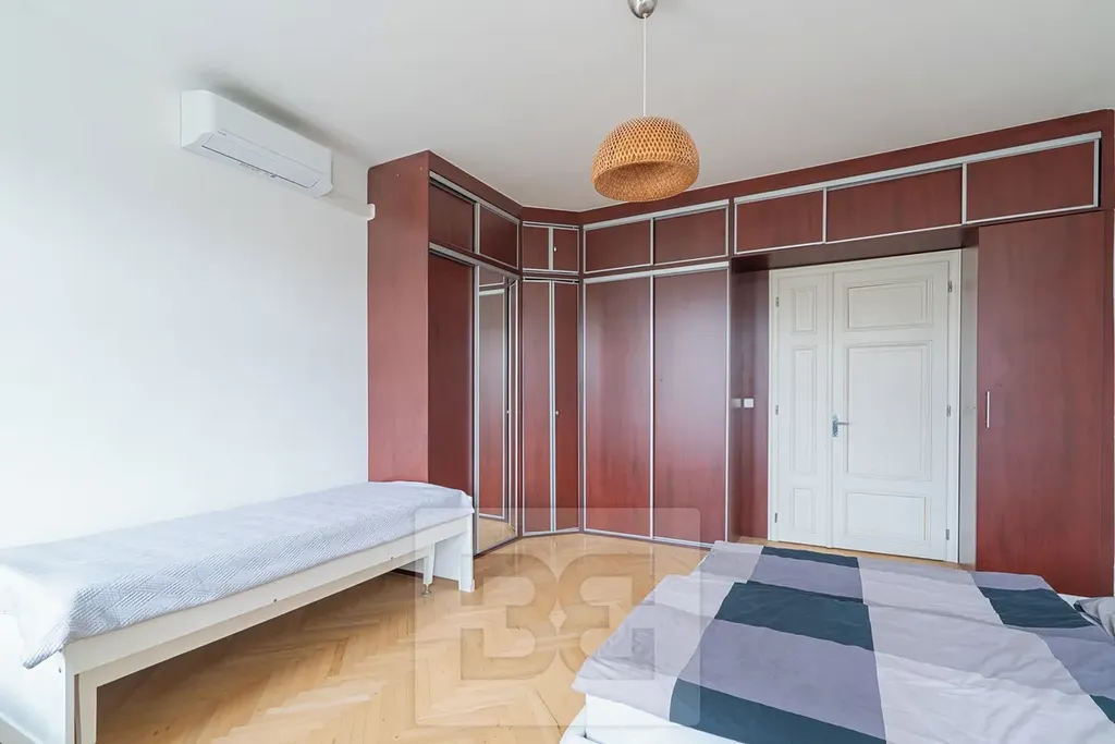 Samostatná ložnice je orientována na západ s výhledem na náměstí a nabízí dostatek úložného prostoru díky velké vestavěné šatní skříni.