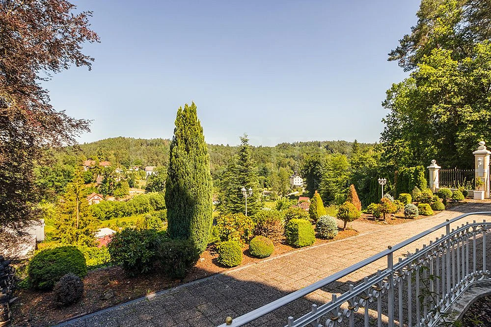 Nabízíme k prodeji výjimečnou nemovitost, secesní vilu postavenou v letech 1902 - 1904. Vila, kvůli výhledu a poloze, leží na svažitém pozemku s východní orientací a rozlohou 6235 m². Pozemek je prakticky rozdělen do několika funkčních částí. Ty vznikly velmi nákladnými terénními úpravami, které v devadesátých letech provedla společnost Metrostav pomocí nejmodernější techniky a technologií.