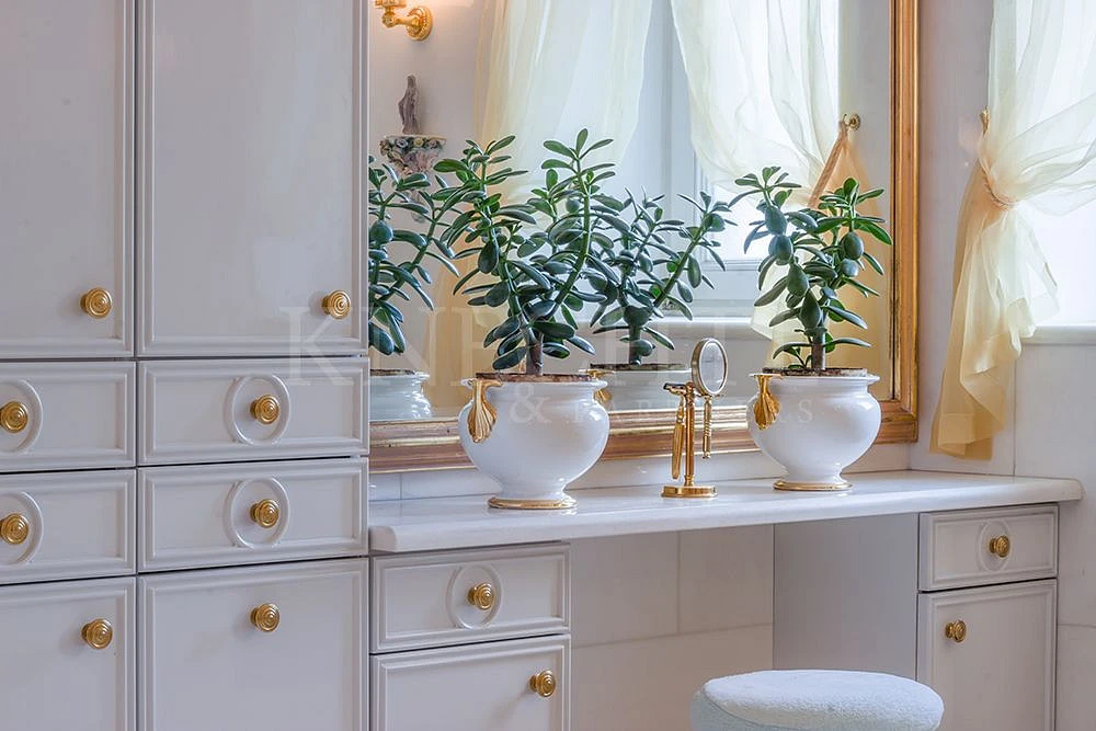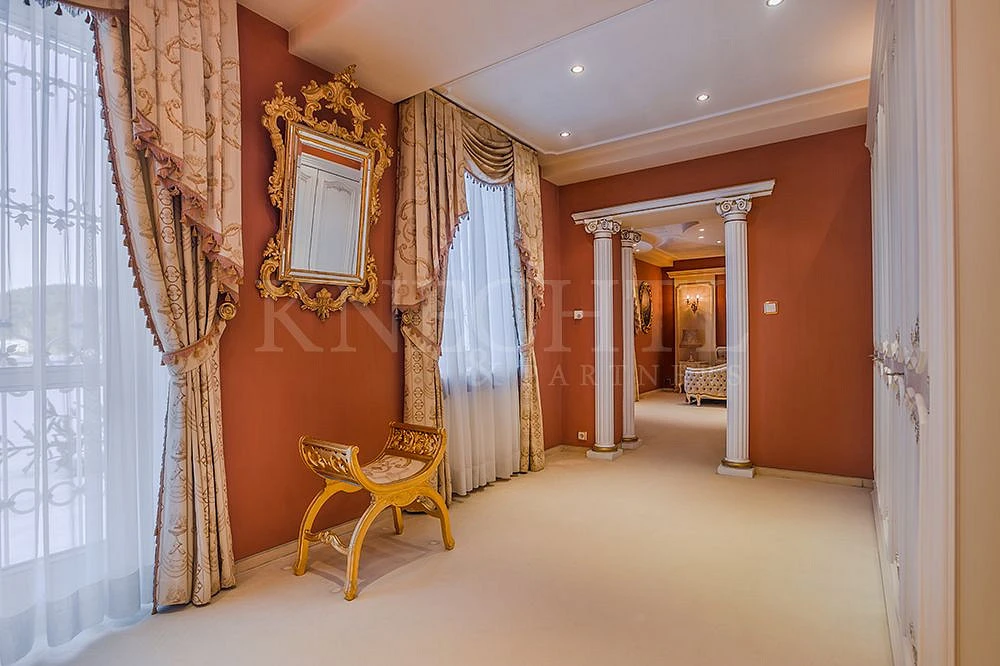 Vila je tvořena čtyřmi podlažími o celkové podlahové ploše 609,60 m². V prvním podlaží se nachází vnitřní bazén s barem, sezením, prostornou saunou i koupelnou. Tento prostor o velikosti 181 m² je několika hliníkovými francouzskými okny přímo propojitelný s travnatou terasou venku, která je ideálním místem pro relax i odpočinek v letních měsících. Další dvě podlaží jsou obytná, prostorná a velkolepá. Čítají několik ložnic, koupelen, kuchyni, obývací pokoj, pracovnu, jídelnu a další. V podkroví se nachází samostatná bytová jednotka, která je pojata v moderním stylu.