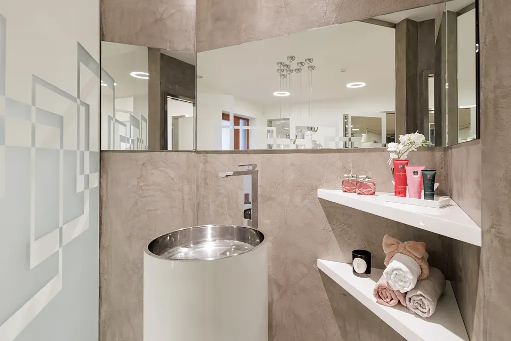 Wellness zóna nabízí luxusní bazén, který je vybaven protiproudem pro aktivní plavání, vířivkou USSPA Swim Spa pro dokonalý odpočinek a relaxaci. Voda v bazénu je sladká, což přispívá k příjemnějšímu koupání bez chemických látek obsažených v chloru.