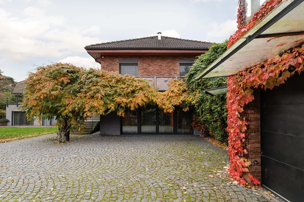 Velká okna od podlahy až ke stropu poskytují nepřerušované výhledy do okolní krajiny a prosvětlují interiér. Na většině oken jsou venkovní žaluzie, které zajišťují ochranu před sluncem a zároveň poskytují soukromí. Podlahy jsou z kvalitního dubového dřeva, obývací pokoj je vybaven krbem a kuchyňské linky jsou vybaveny spotřebiči Miele. Vytápění je zajištěno podlahovým topením, které je rozvedeno prakticky po celém domě, u větších oken je doplněno o podlahové radiátory. Krbová vložka je teplovodní, napojená na tepelnou soustavu, což umožňuje vytápění i pomocí krbu. Dvojgaráž a další parkovací místo na pozemku zajišťují dostatek parkovacích kapacit. Dům je chráněn zabezpečovacím systémem a napojen na PCO (pult centralizované ochrany).