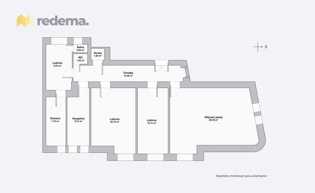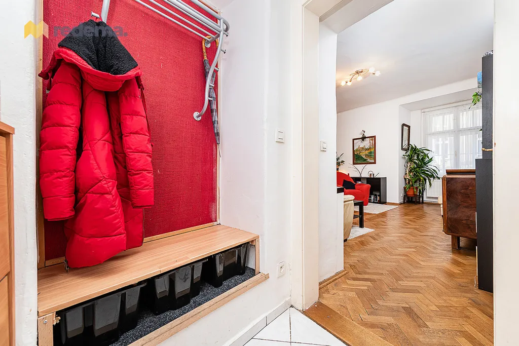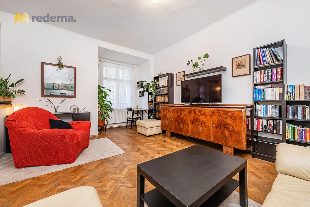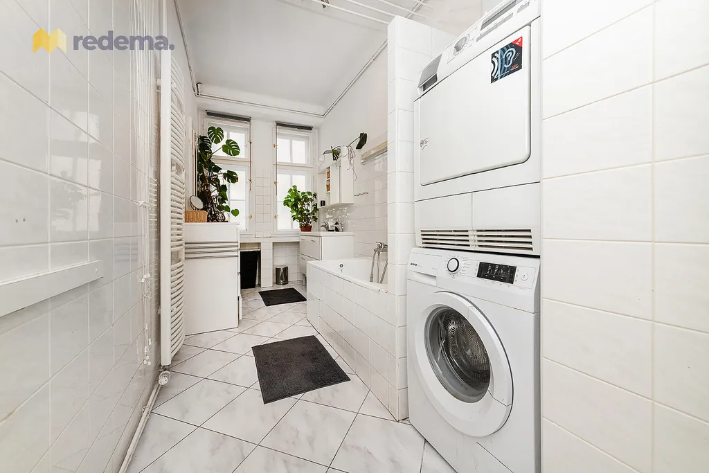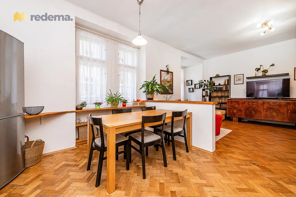 Původní dispozice 3+1 prošla citlivou rekonstrukcí a byla upravena na velmi efektivní 4+kk. Interiér působí vzdušně a elegantně, k čemuž významně přispívají vysoké stropy. Dominantou bytu je velkorysý obývací pokoj propojený s kuchyní a jídelnou (s plochou zhruba 39 m²), který tvoří přirozené centrum celého domova – ideální prostor pro rodinný život i setkávání s přáteli.
