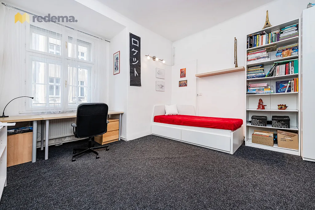 Byt nabízí dvě dětské místnosti (~16 a ~22 m²), které jsou mezi sebou propojené, přičemž každá má vlastní vstup. Jedna z nich je navíc doplněna o prakticky vybudované patro, které skvěle využívá výšku stropu a poskytuje dětem další prostor na spaní nebo hraní.