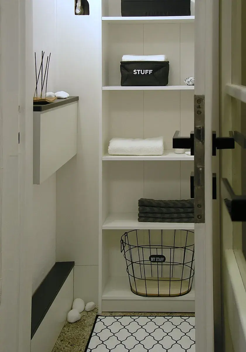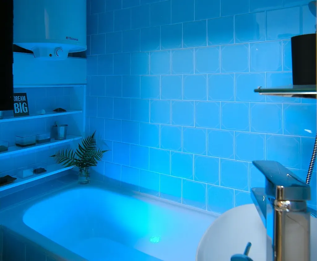 Byt se nachází v prvním patře, je vzdušný a slunečný, má velkou světlou předsíň s úložnými prostory a zrcadlem. WC i koupelna jsou umístěny odděleně. Koupelna disponuje vanou a moderním umyvadlem se skříňkou a nerezovou stojánkovou baterií (barvy osvětlení v koupelně lze měnit).