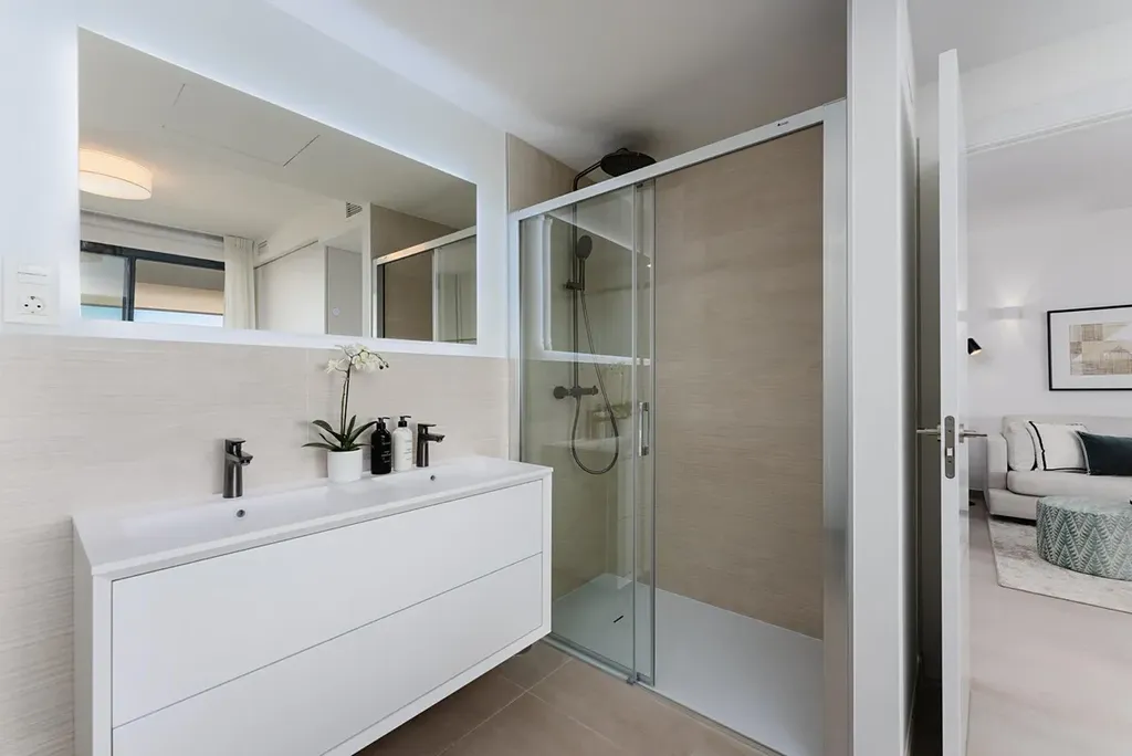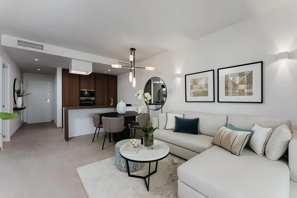 Nabízíme k prodeji zcela nový, nikdy neobývaný apartmán v prestižním rezidenčním komplexu SeaViews Reserve, situovaný ve 3. patře. Tento výjimečný byt se nachází pouhých 200 metrů od nádherných pláží Carvajal na pomezí Benalmádeny a Fuengiroly a nabízí ideální kombinaci klidu, komfortu i skvělé dostupnosti. Velkým benefitem je vlaková zastávka přímo u komplexu s přímým spojením na letiště, což zajišťuje maximální pohodlí bez nutnosti využívat auto. Apartmán disponuje dvěma ložnicemi, dvěma koupelnami a praktickou technickou místností. Dominantou je světlý obývací pokoj s přímým vstupem na prostornou terasu, která vybízí k relaxaci i posezení s výhledem. Celý byt se prodává včetně luxusního vybavení a je připraven k okamžitému užívání. Součástí moderní a pečlivě udržované urbanizace jsou nadstandardní služby, jako je infinity bazén, plně vybavené fitness centrum, sauna a turecké lázně, které zaručují maximální komfort a životní styl na vysoké úrovni. K apartmánu dále náleží dvě podzemní garážová stání a sklep.