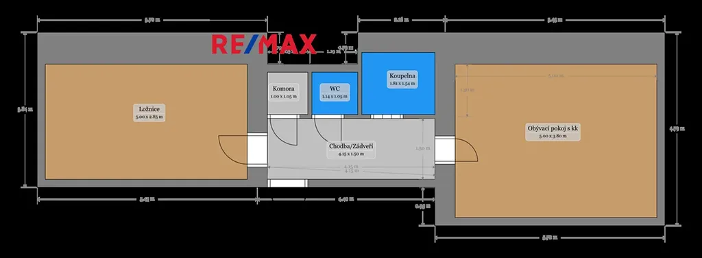 Byt nabízí velmi funkční dispozici. Najdete zde prostorný obývací pokoj s kuchyňským koutem, který poskytuje dostatek místa pro pohodlné vaření i odpočinek, dále ložnici s prostorem pro velkou šatní skříň i pracovní kout, koupelnu se sprchovým koutem a pračkou, samostatné WC a také komoru s praktickou vstupní chodbou.