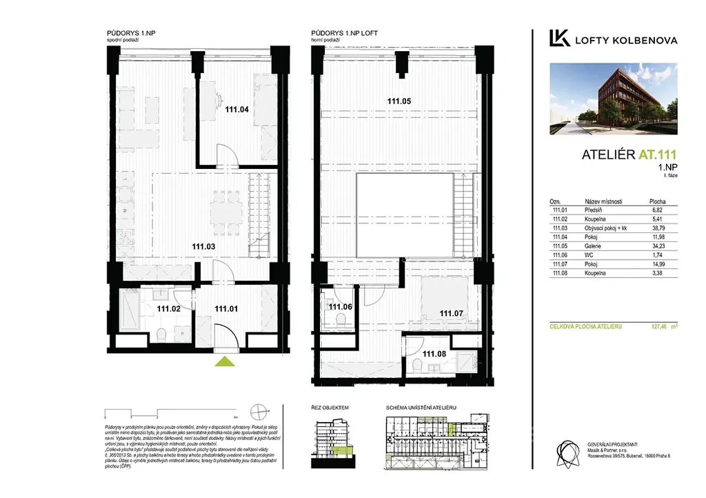Byt je k dispozici ihned, pro více informací o objektu a jiných dispozic bytů/ateliérů přímo od developera mě prosím kontaktujte.