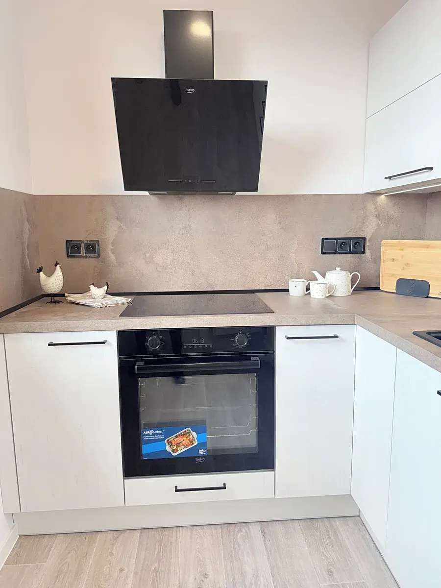 • Kuchyňská linka s horkovzdušnou troubou, indukcí, lednící s mrazákem